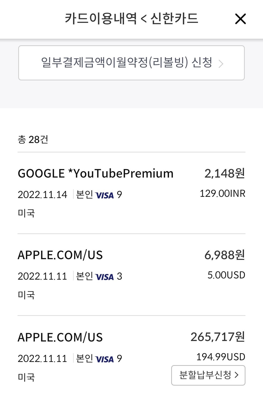 다음은 실제 접수 금액이다. 해외 결제 건은 승익내역말고 이용내역을 확인해야 실제 청구금액을 확인 할 수 있다.