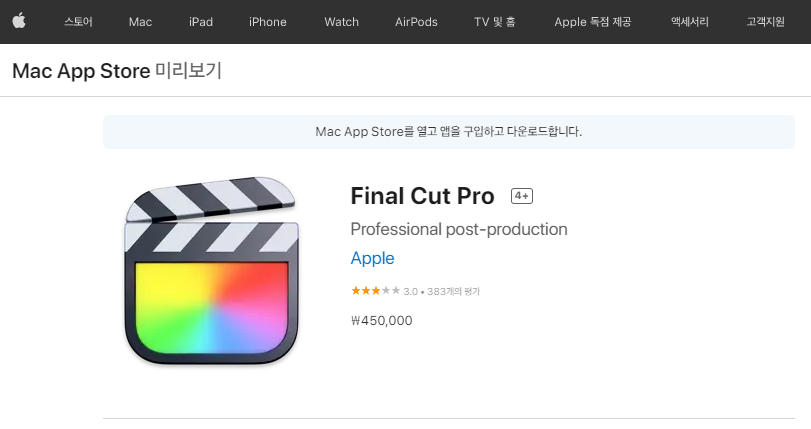 맥북을 구매한 목적에 맞게 Final Cut Pro도 구매를 하려고 애플 공홈부터 찾아봤다.