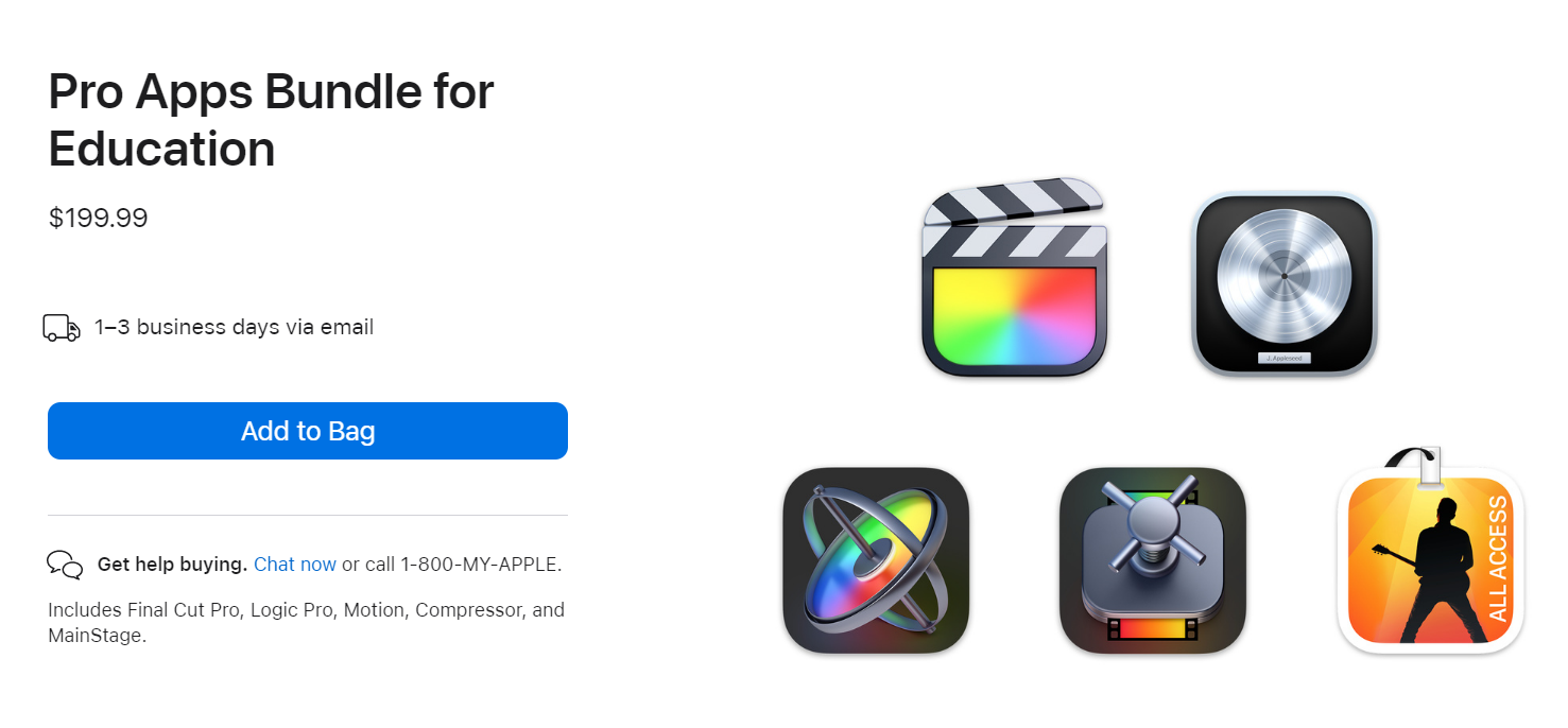 Final Cut Pro, Motion, Compressor, Logic Pro 그리고 Main Stage까지 총 5개의 프로그램을